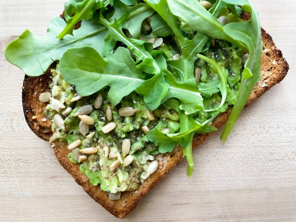 Pan tostado con aguacate, rico en omega-3