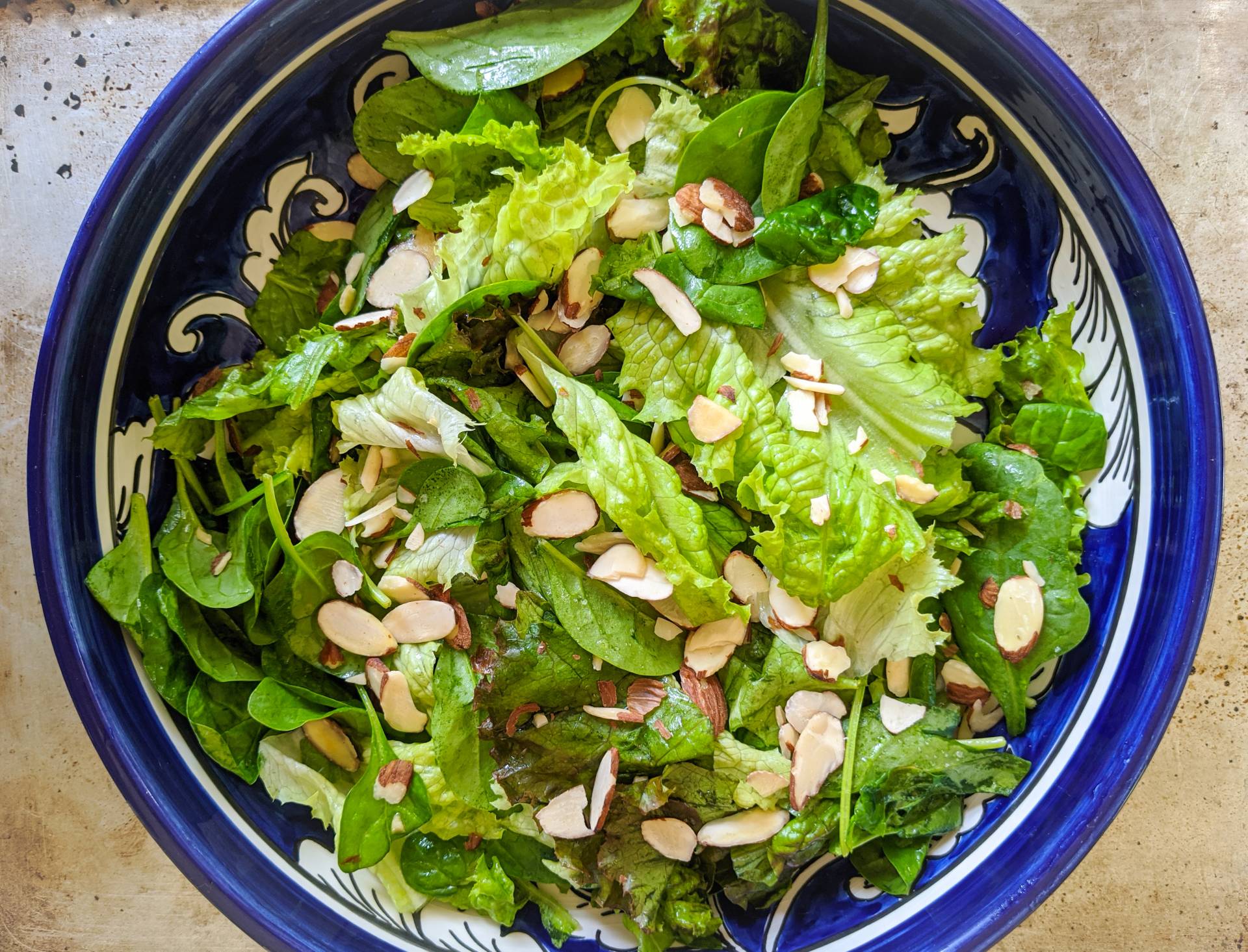 The name says it all. This green salad is so easy to make and the perfect supporting character to whatever main you’re making. The method of toasting almonds and adding them directly to your dressing... is a genius secret for jumpstarting the flavor infusion process.