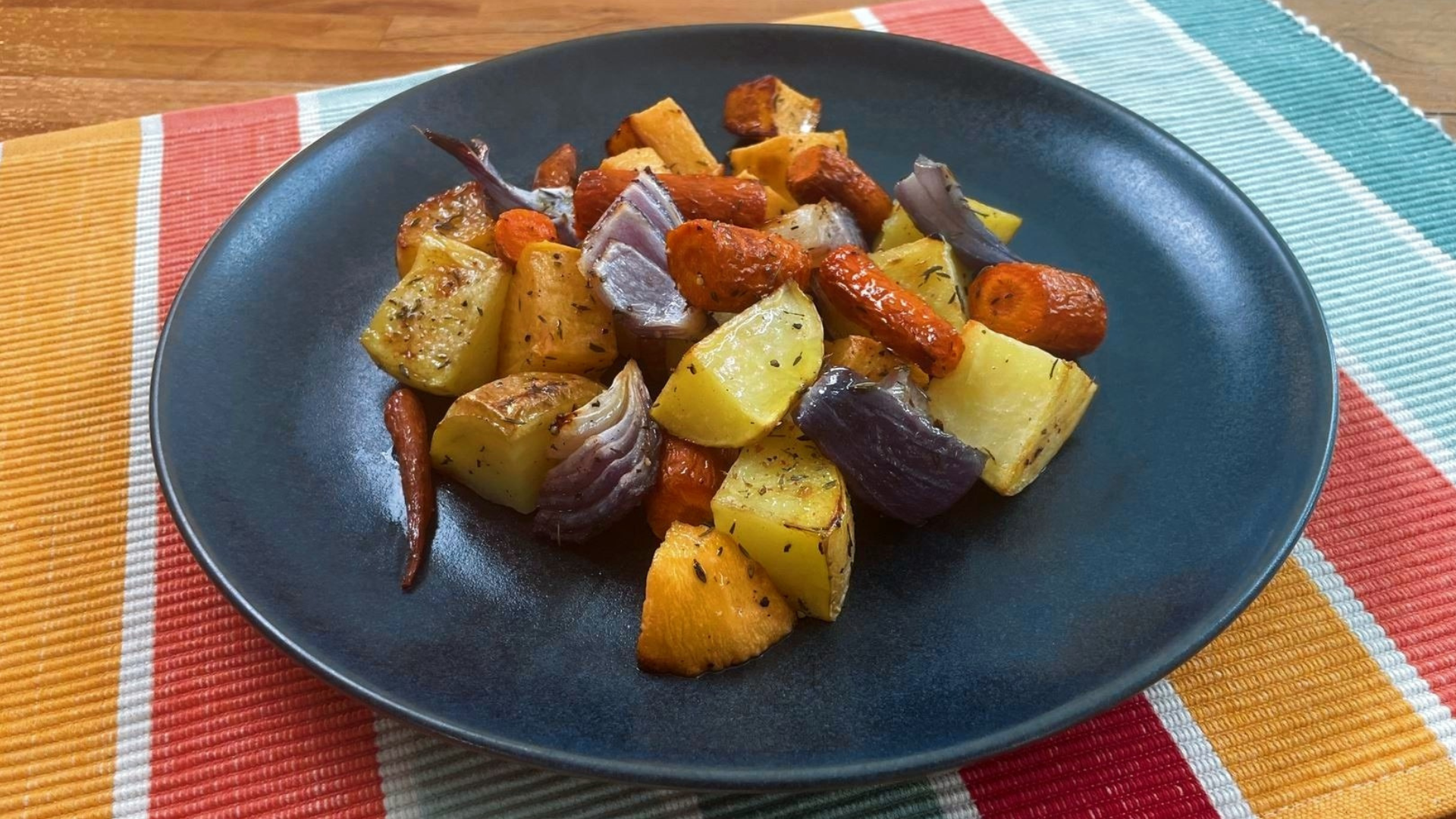 Roasting is a great way to use seasonal vegetables at any time of year — just adjust the recipe to the vegetables you have at home. By leaving the skin on when able, you will... get more fiber and nutrients. Use this as a side with roasted chicken or a baked fish, part of a Nourish Bowl, or as a base for a soup. See the Chef Tips for more recommended veggie combos.